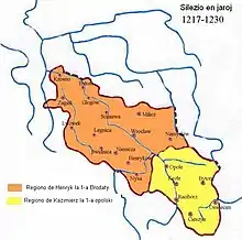 A Silésia foi dividida em parte baixa e alta, em 1172, durante o período da fragmentação feudal da Polônia, quando a terra foi dividida entre os dois filhos do Grão-Duque Vladislau II. Boleslau I governou a Baixa Silésia, com sua capital em Breslávia e Miecislau IV controlou a Alta Silésia, com sua capital em Opole.