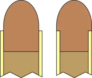 Um projétil com rebaixo (a direita), comparado com um convencional (a esquerda).