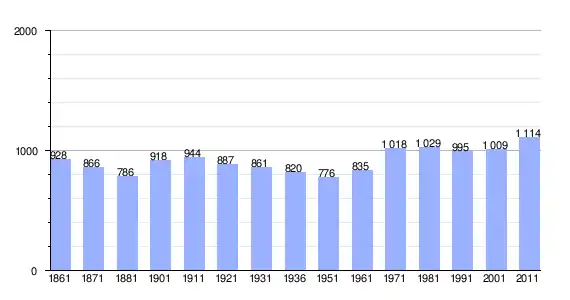 | Variação demográfica do município entre 1861 e 2011[3] |