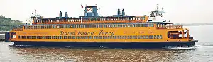 Há estacionamento no St. George Terminal, que também é o terminal da Staten Island Railway. Do lado de Manhattan, o terminal tem um acesso para MTA NYCT Bus (M5, M15 e M20) e metrô (linhas 1, N e R em South Ferry - Whitehall Street e linhas 4 e 5 em Bowling Green). O passeio de barco é um dos favoritos dos turistas a Nova York, pois proporciona uma excelente vista para o horizonte de Manhattan e da Estátua da Liberdade. A balsa, como o sistema de metrô, funciona 24 horas por dia, com serviço contínuo durante a noite depois do pico de tráfego.