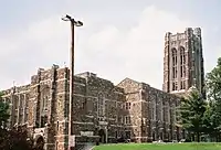 Ela está localizada em um campus de 38 acre(s)s (0,15 km2) no topo da colina, no nordeste de Baltimore, rodeado pela 33rd Street, Alameda e Loch Raven Boulevard.[8] O edifício principal da escola é um marco histórico nacional e tem uma designação de marco da cidade de Baltimore.[9] De acordo com a Sociedade Histórica de Maryland, "a estrutura em estilo de arquitetura neogótica de granito e pedra calcária é o ponto mais alto dentro dos limites da cidade. Com uma torre gótica singular e impressionante, que mede duzentos pés de altura, o edifício e o campus circundante, como um parque, oferecem vistas panorâmicas do distante horizonte da cidade de arranha-céus e Inner Harbor.[10]