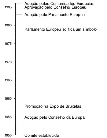 | 1955 | O Conselho da Europa adota a bandeira europeia como símbolo da unidade europeia. |