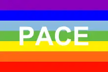 A bandeira arco-íris foi usada pela primeira vez como símbolo pacifista na Itália nos anos 60. Mas só se popularizou a nível mundial em 2002 durante os protestos contra a Ocupação do Iraque. A versão mais comum tem sete barras horizontais, sendo a ordem inversa à usada pelo movimento LGBT, e com uma barra azure, a cor nacional de Itália. Geralmente tem inscrita a palavra pace, que significa "paz" em latim, em letras maiúsculas de cor branca. Também é usual ver outras traduções da palavra.