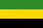 | Descrição | Uma cruz diagonal dourada divide o campo em quatro triângulos de verde (superior e inferior) e preto (esquerda e direita). |