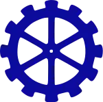 A engrenagem simboliza os trabalhadores.[7] A roda dentada ou engrenagem é o nome dado ao objeto geralmente circular ou cilíndrico, cujas extremidades estão cortadas em seções, em forma de "dentes", e são projetadas com a finalidade de compor um sistema que produz movimento. A tradição atribui a criação da roda dentada a Arquimedes de Siracusa (287 a.C. – 212 a.C.). Um dos tipos mais primitivos de engrenagens que se tem notícia é uma roda com cavilhas de madeira.[8] A engrenagem também representa o bom funcionamento interno de um dispositivo, uma peça que nem sempre está visível para os espectadores, mas que é essencial em um sistema. Ela também representa a ideia de movimento e constância.[9]