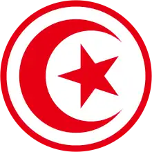 Bandeira: Estrela e crescente da Tunísia no meio do branco, entre vermelho e preto.[19]