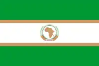 | Descrição | É constituída em formato bicolor de três bandas horizontais de verde, branco e verde estando a banda branca separada das bandas verdes por duas faixas finas de ouro e contém repousante ao centro o Emblema da União Africana |