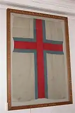 A cruz nórdica simboliza o cristianismo e os laços com a Dinamarca e os demais países escandinavos. O azul e o vermelho são cores tradicionais feroesas, o branco representa a espuma do mar e os claros céus do arquipélago.[5]