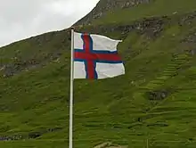A bandeira das Ilhas Feroé é uma Cruz Nórdica que segue a tradição iniciada pela Dannebrog.[1] Esta bandeira chama-se Merkið, que significa; "o estandarte" ou "a marca".[2] Assemelha-se com as bandeiras das vizinhas Islândia e Noruega.