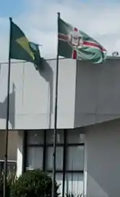 Suas cores são verde, branco e vermelho, além do brasão no círculo branco. A bandeira atual foi adotada em 1975, com desenho de autoria de Arcinoé Antonio Peixoto de Faria, durante a gestão do prefeito Samuel Milléo. A atual lei dos símbolos municipais, que regulamenta o uso da bandeira municipal encontra-se em vigor desde a mesma época da adoção.