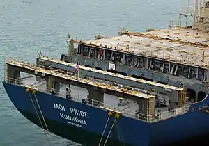 O MOL Pride, propriedade da empresa japonesa Mitsui O.S.K. Lines, com a bandeira da Libéria.