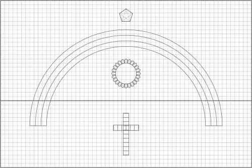 - A estrela terá 3 unidades de altura e será construída pela união de todos os vértices de um pentágono, ficando distante 2 unidades do topo da faixa azul;