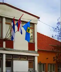Bandeira da República Socialista da Sérvia usada nas cidades habitadas pelos sérvios na Croácia antes de 1991.