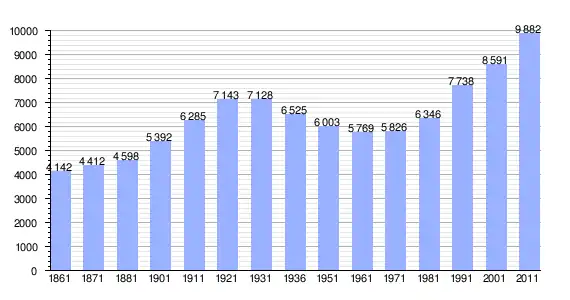 | Variação demográfica do município entre 1861 e 2011[3] |