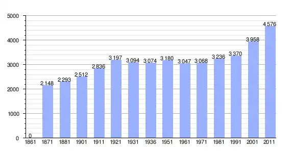 | Variação demográfica do município entre 1861 e 2011[3] |