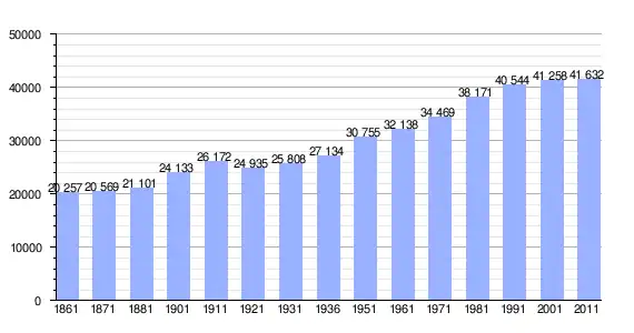 | Variação demográfica do município entre 1861 e 2011[3] |