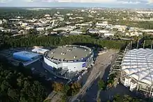 A Barclaycard Arena (esquerda), ao lado da Nordbank Arena.