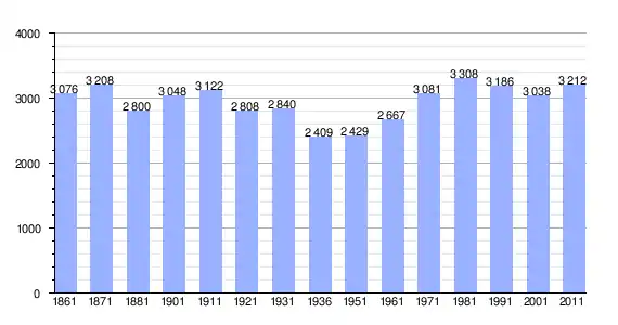 | Variação demográfica do município entre 1861 e 2011[3] |