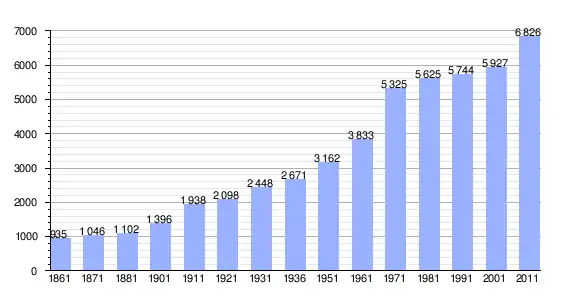 | Variação demográfica do município entre 1861 e 2011[3] |