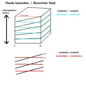 Baroclinia é um estado do escoamento de um fluido em que as linhas isóbaras (de igual pressão) e isotermas (igual temperatura) não coincidem. Assim, a temperatura varia sobre superfícies isobáricas e a pressão sobre superfícies isotérmicas.[1]