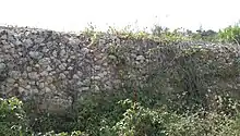 A barragem consiste num paredão de planta rectilínea e de secção rectangular, com cerca de 36,5 m de comprimento, 2,5 m de espessura,[1] e 2,37 a 1,3 m de altura.[3] Esta estrutura é formada por pequenos blocos de pedra argamassados em cal e areia,[3] no antigo sistema romano de Opus caementicium,[4] dispostos em várias camadas, o que pode indicar a presença de várias fases sucessivas de construção.[1] Com efeito, ainda são visíveis in situ as várias camadas, além de alguns furos onde foram encaixadas as tábuas na horizontal, para fazer a cofragem.[3] O muro corre de Nordeste para Sudoeste, formando originalmente uma albufeira na vertente Norte.[5]