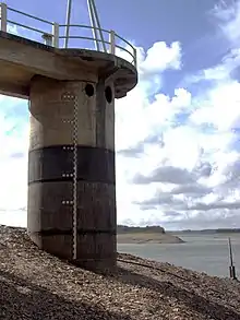 É uma barragem de aterro. Possui uma altura de 35 m acima da fundação (28 m acima do terreno natural) e um comprimento de coroamento de 711 m (largura 8 m). O volume da barragem é de 680.000 m³. Possui uma capacidade de descarga máxima de 114 (descarga de fundo) + 124 (descarregador de cheias) m³/s.[1]