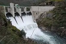 É uma barragem de arco e gravidade em betão. Possui uma altura de 35,5 m acima da fundação e um comprimento de coroamento de 127 m. O volume de betão é de 19.000 m³. Possui uma capacidade de descarga máxima de 1.480 m³/s.[1]