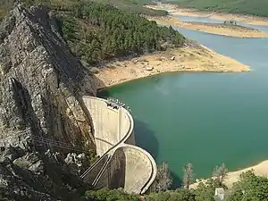 Foi projetada por André Coyne e tem aproveitamento hidroelétrico. Foi inaugurada em 1942, tendo levado onze anos a ser edificada. Em 1931 começou a ser construída e em 1934 iniciou-se levantamento da barragem, que terminou em março de 1935. Possui 76 metros de altura e um comprimento de coroamento de 115 metros.