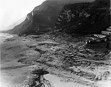 A Barragem de Vajont, atualmente em desuso, foi concluída em 1960 no vale do rio Vajont ao lado do Monte Toc, 100 km ao norte de Veneza, Itália. Um deslizamento de terra das encostas em 9 de outubro de 1963 causou a transposição da barragem e cerca de 1910 mortes.[1]