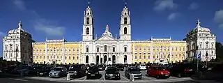 O Palácio Nacional de Mafra é o mais internacional dos edifícios barrocos portugueses e, no seguimento da moda entre os monarcas europeus. Constituído por um palácio real, uma basílica e um convento, resulta de uma promessa feita pelo rei em relação à sua sucessão. Com projecto de Johann Friedrich Ludwig), arquitecto alemão estabelecido em Portugal, inicia as obras em 1717 e termina em 1730. É um edifício imenso, possui na fachada dois torreões, inspirados no desaparecido torreão do Paço da Ribeira, com a basílica ao centro e duas torres sineiras dominadas por uma imponente cúpula. Por trás fica o mosteiro de modo a que não seja visto da rua. O conjunto é visível do mar, funcionando como um marco territorial, e utilizado como residência de verão da corte. Sabe-se que o rei queria construir uma igreja ainda maior que o Vaticano, mas ao saber que foi necessário mais de um século mudou de ideias. No seu conjunto além da basílica destacam-se, ainda, a biblioteca os seis órgãos da igreja e os dois carrilhões.