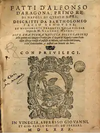 - Fatti d'Alfonso d'Aragona, Primore di Napoli di questo nome - Bartolomeo Facio, Giacomo Mauro.