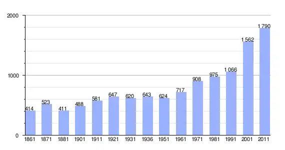 | Variação demográfica do município entre 1861 e 2011[3] |