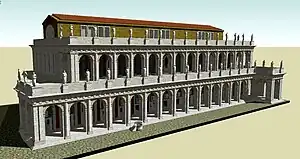 Em 14 a.C., depois de um incêndio, Augusto restaurou o edifício, que foi muito danificado.[1] Na ocasião, as tabernas que ficavam na frente do edifício na direção da praça do Fórum Romano e o pórtico nos fundos foram totalmente reconstruídos. Este último foi rededicado aos dois netos do imperador com o nome de Pórtico de Caio e Lúcio César. Ele contava com duas ordems de arcadas com pilastras e semicolunas dóricas. Os dois andares superiores da basílica foram totalmente reconstruídos e sobre a ordem superior, um ático foi construído e decorado com elementos de tema vegetal e estátuas de bárbaros.