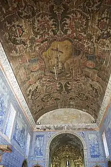 O seu interior está organizado numa só nave, de secção rectangular, com uma capela-mor de menores dimensões, igualmente de planta rectangular, e que está ladeada por dois anexos.[9] A sobriedade exterior do edifício constrasta com a riqueza decorativa no seu interior, com as paredes forradas com cerca de sessenta mil azulejos,[6] num estilo típico dos artesãos lisboetas de 1730.[6] A decoração é atribuída a João Antunes,[8] que se destacou pela sua obra religiosa barroca em Portugal,[9] sendo o interior bastante semelhante ao da Igreja de Alcácer do Sal, igualmente da autoria de João Antunes.[8] Os azulejos formam dois registos distintos, um deles com composições de albarradas, enquanto que o segundo apresenta vários painéis retratando a Batalha de Ourique,[8] a história de D. Afonso Henriques e o Milagre de Ourique.[6] Este milagre constistiu numa aparição de Jesus Cristo a D. Afonso Henriques, tendo-lhe prometido que a batalha seria a génese de uma nova nação, que depois iria difundir a religião cristã pelo mundo.[2] Destaca-se igualmente a talha dourada e policromada nos altares,[5] principalmente a do altar-mor,[9] e várias imagens marianas.[5] A cobertura da capela-mor, em abóbada de berço, também está forrada com painéis de azulejos, produzidos em 1713 na cidade de Lisboa, e que retratam várias cenas da vida de Jesus Cristo.[8] A cobertura do edifício, em madeira, é um exemplo da marcenaria do século XVIII,[6] com uma grande pintura que representa igualmente o milagre da Batalha de Ourique.[2]