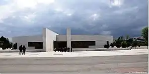 Obras de Pedro Calapez junto à entrada da Basílica da Santíssima Trindade