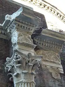 Base e fragmento de uma das oito colunas coríntias do salão central.
