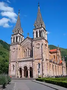 Vista da frente da Basílica de Nossa Senhora de Covadonga.