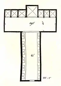 De grandes dimensões, foi construído, assim como muitos edifícios contemporâneos erigidos para as ordens mendicantes, de tijolos com uma grande torre sineira à esquerda, reduzida depois de um terremoto em 1798. O interior é no formato de uma cruz egípcia com uma enorme nave coberta por treliças e um transepto com capelas altas.