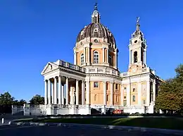 A igreja, com planta central, é coberta por uma cúpula com tampa dupla inserida em um tambor alto com grandes janelas e precedida por um pronau profundo, em estilo neoclássico, em mármore com oito colunas coríntias. A igreja está ligada, por duas torres sineiras late-barrocas laterais, ao grande edifício atrás dela, bastante rígido em suas linhas quadradas, projetado como um convento anexo, que se desenvolve em torno do claustro localizado ao longo do eixo longitudinal. O mosteiro, também projetado por Juvarra, originalmente abrigou a Ordem dos Cônegos Regulares Lateranenses.[2]