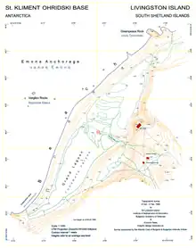 - (em búlgaro) L.L. Ivanov, Base São Clemente de Ohrid, Ilha Livingston, mapa topográfico à escala 1:1000, Projecto da Comissão Búlgara para os Topônimos Antárticos, apoiado pelo Clube Atlântico da Bulgária e o Instituto Antárctico Búlgaro, Sófia, 1996 (O primeiro mapa topográfico antárctica búlgaro)