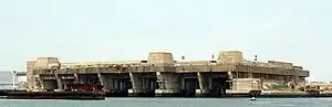 Construída entre 1941 e 1944 pela Alemanha nazi durante a ocupação, é destinada à 2.º e 10.ª flotilha de U-boot da Kriegsmarine, inscrevendo-se no dispositivo da muralha do Atlântico. A sua presença é a causa da destruição da cidade de Lorient pela aviação aliada em janeiro e fevereiro de 1943, e pela resistência alemã a 10 de maio de 1945.