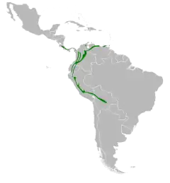 Pode ser encontrada nos seguintes países: Bolívia, Colômbia, Costa Rica, Equador, Panamá, Peru e Venezuela.[1]