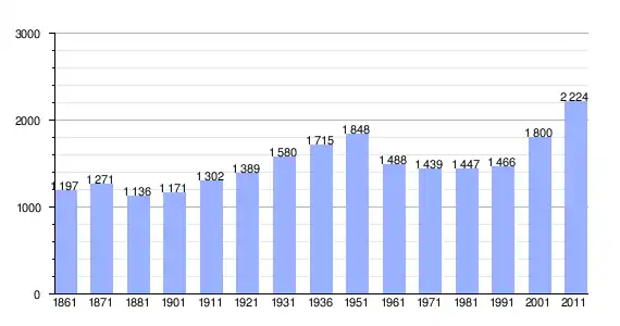 | Variação demográfica do município entre 1861 e 2011[3] |