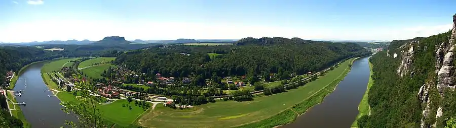 Está situada próximo a uma longa curva do Elba, a sudeste de Dresden e constitui o mais notável marco da região conhecida como Saxônia Suíça.
