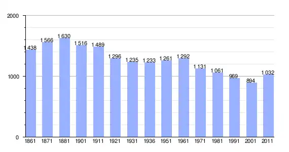 | Variação demográfica do município entre 1861 e 2011[3] |