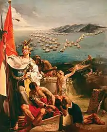 ![]() Batalha Naval de Cabo Matapão, 19 de Julho de 1717, pintado por António José Ramos em 1956. | |||