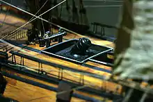 Ainda em comparação, a nau Dannebrog de 90 peças da armada da Dinamarca, perdida na vitória naval de Køge Bugt ou baía de Køge contra a Suécia em 1710, estava armada da seguinte forma: