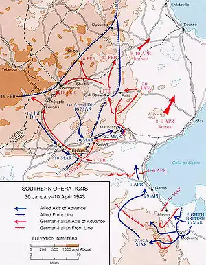 Os Estados Unidos não conseguiu tirar proveito do fracasso alemão, no entanto, passaram várias semanas frustrantes tentando empurrar a infantaria italiana para fora das duas colinas estratégicas na estrada para Gabès. Grandes tentativas repetidas fariam progresso, apenas para ser empurrado para trás por pequenas unidades da 10ª ou 21ª Panzer que se conduzem até a estrada de Gabès em uma hora ou assim. Melhor apoio aéreo teria feito esta "defesa móvel" difícil, mas a coordenação entre o ar e as forças terrestres permaneceu um problema sério para os Aliados.