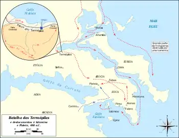 | Mudanças territoriais | Pérsia ganha o controle de Beócia e marcha para Atenas | ||