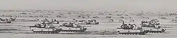 ![]() Um tanque Type 69 iraquiano destruído pelos Aliados. | |||